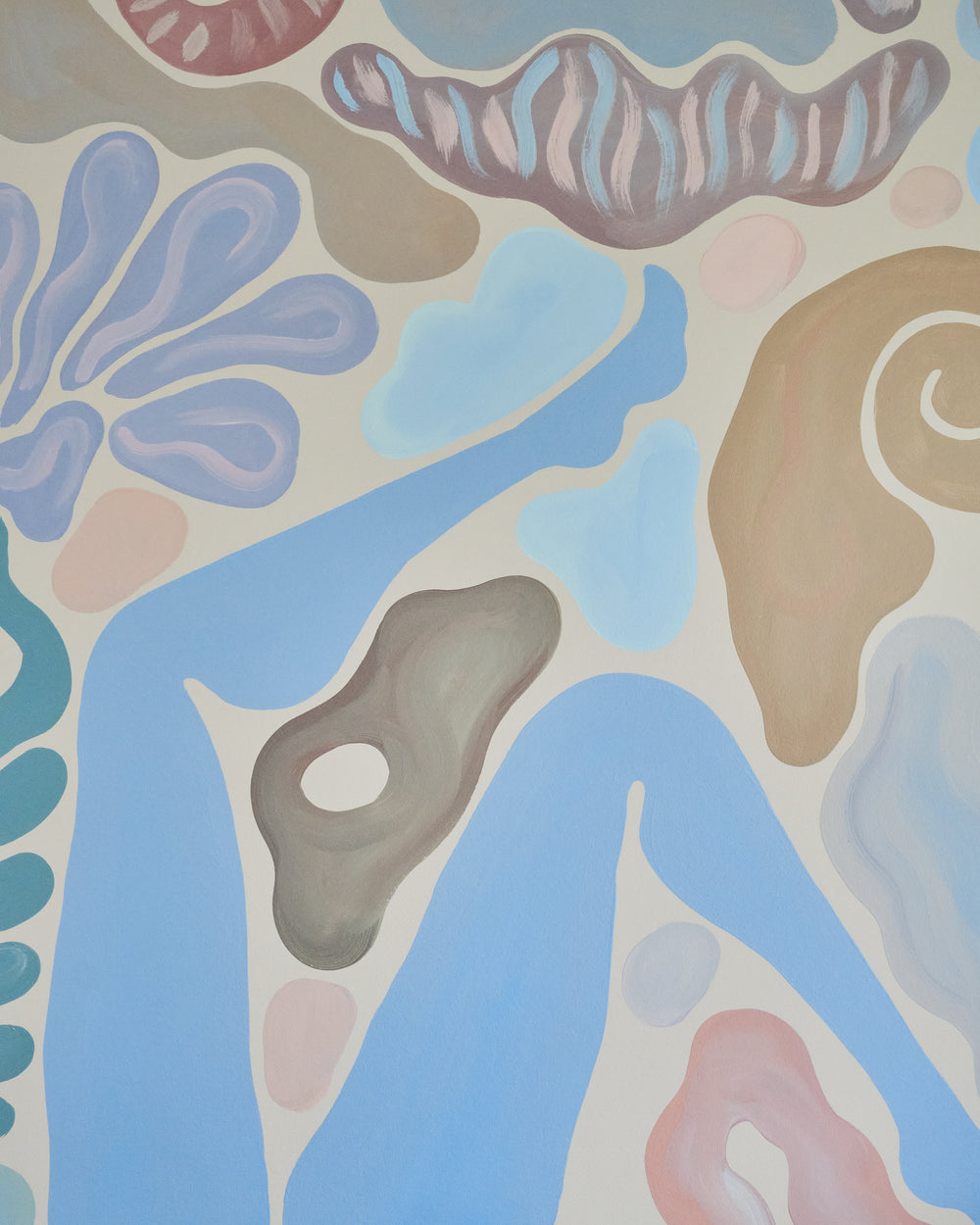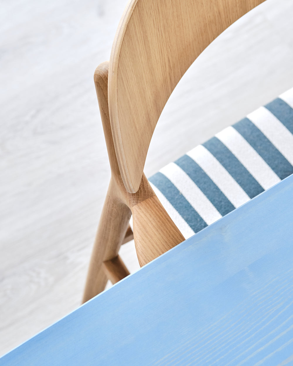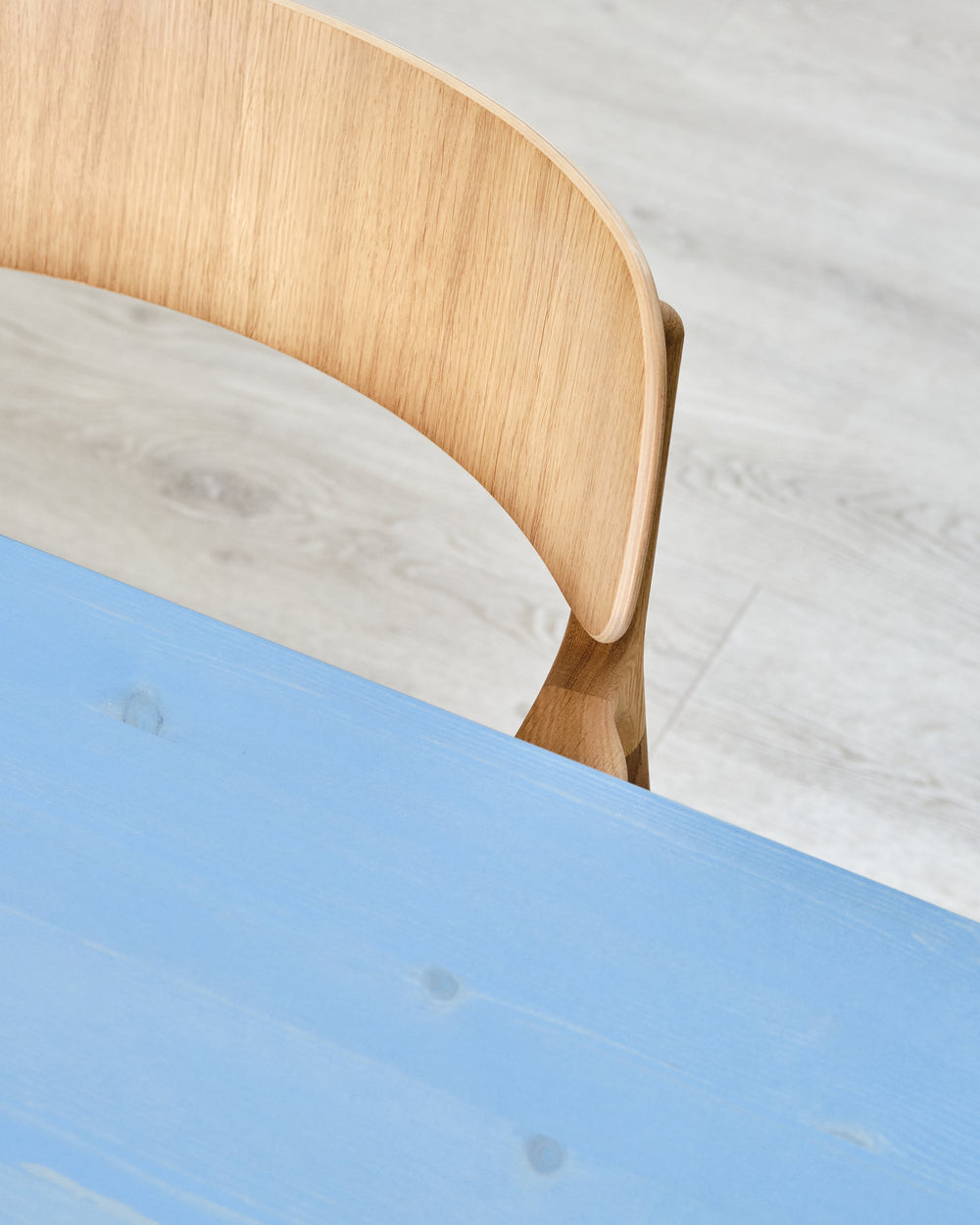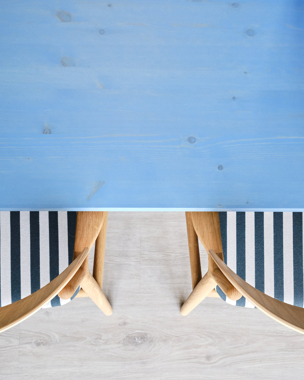 In this playful and light-filled home, colour becomes both architecture and atmosphere. The hand-painted walls create an organic, flowing backdrop, where the blue Gaspard Tableau dining table anchors the space with calm presence. A piece that feels both bold and serene - bringing balance to a room full of life, movement and everyday gatherings.