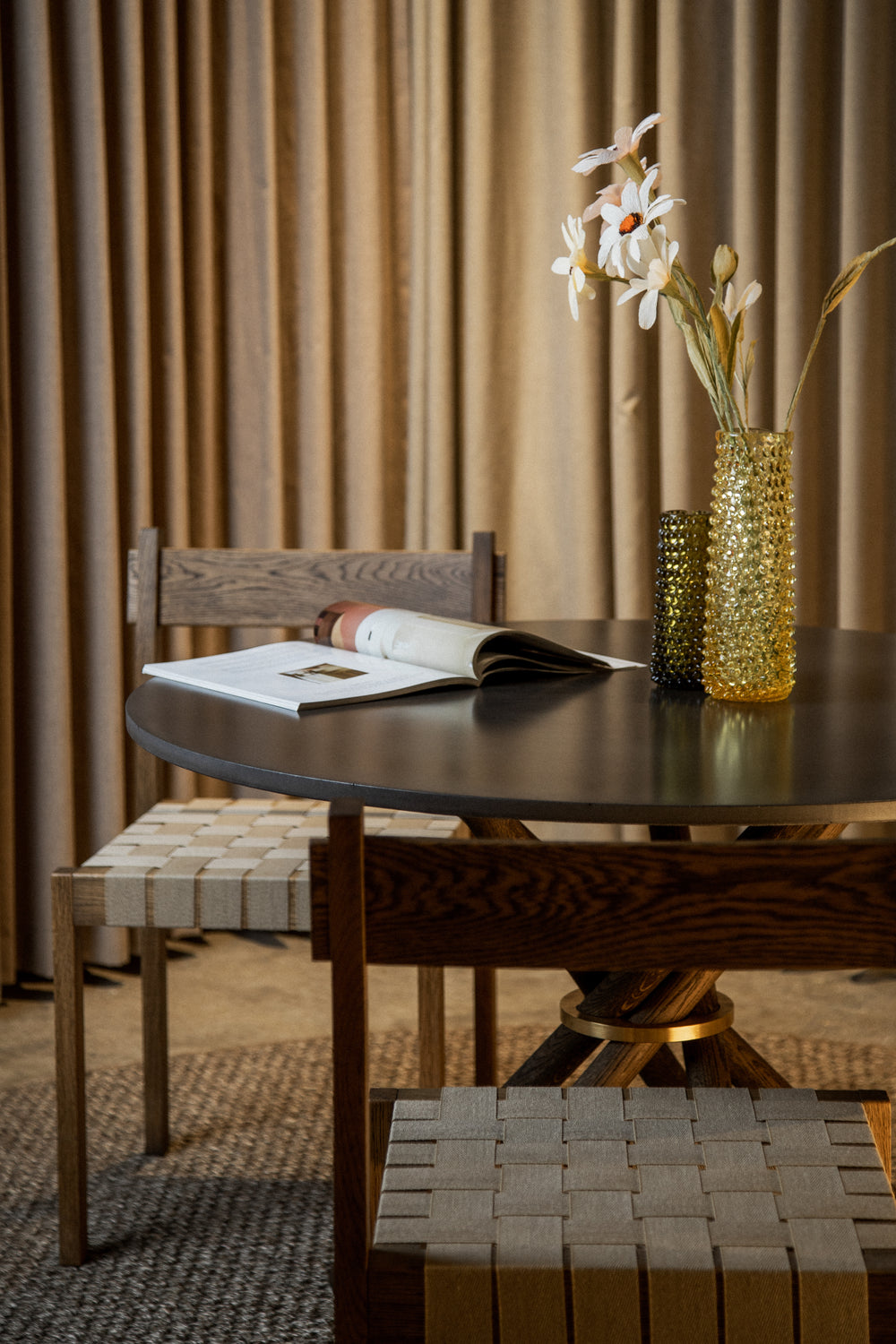 Hector 120 - a dining table designed to be the centerpiece of your dining space, perfect for both everyday use and special occasions. Its elegant expression and form make it ideal for a dynamic space. With its extendable extra leaves, the table diameter can be expanded by 50 cm, allowing you to easily accommodate more guests. The refined design language of this dining table fits perfectly in modern decor.